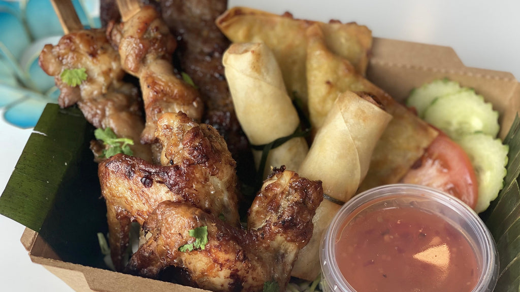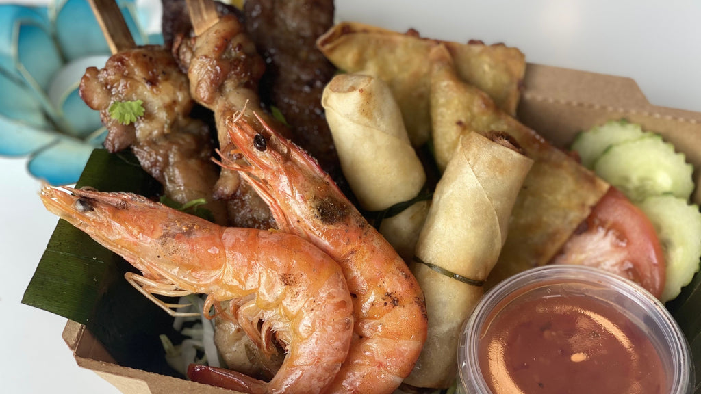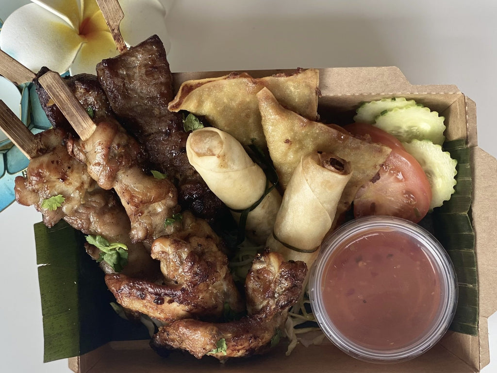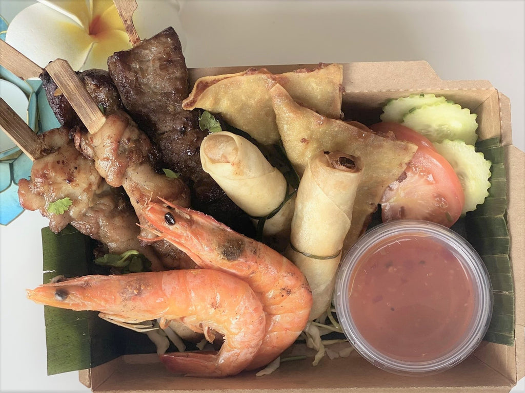 Heerlijke mix van snacks. 2 stuks garnalen, 2 stuks loempia's, 2 stuks wonton, 2 stuks varkenspies en 2 stuks kipspies. 2 stuks kip vleugels, 2 stuks loempia’s, 2 stuks wonton, 2 stuks varkenspies en 2 stuks kipspies Andere mix gewenst? Alles kan veranderd worden. |